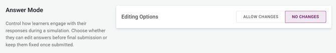 Control how learners engage with their responses during a simulation. Choose whether they can edit answers before final submission or keep them fixed once submitted.