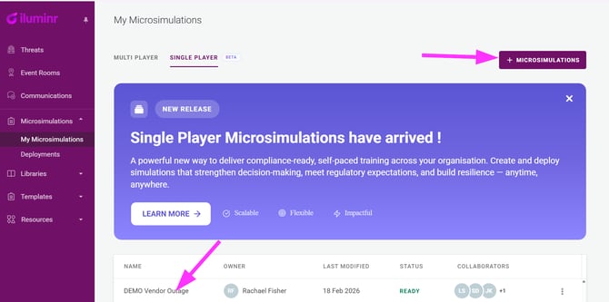 - To create a new Single Player Microsimulation click the + MICROSIMULATIONS button.