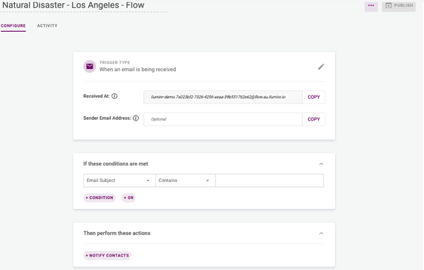 Flows are designed to activate when an email is received at a designated address from a named (known) address