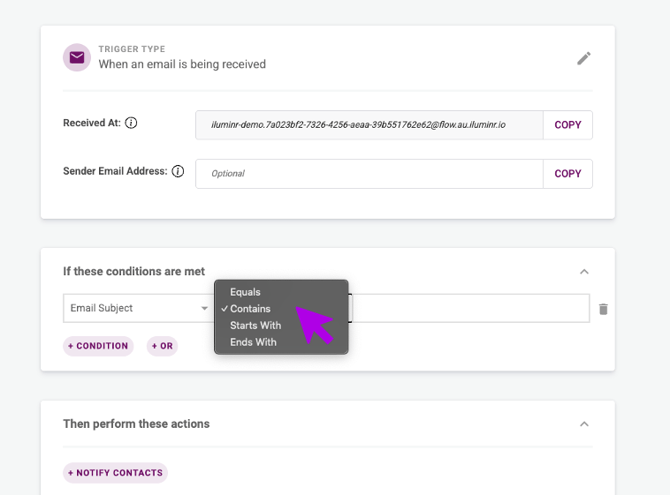Sender Email Address: Can be used to add the email address you are expecting to receive the "trigger" notification from.