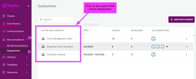 - In the navigation menu, expand Microsimulations and select Deployments.