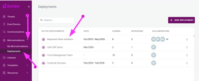 - In the navigation menu, expand Microsimulations and select Deployments.